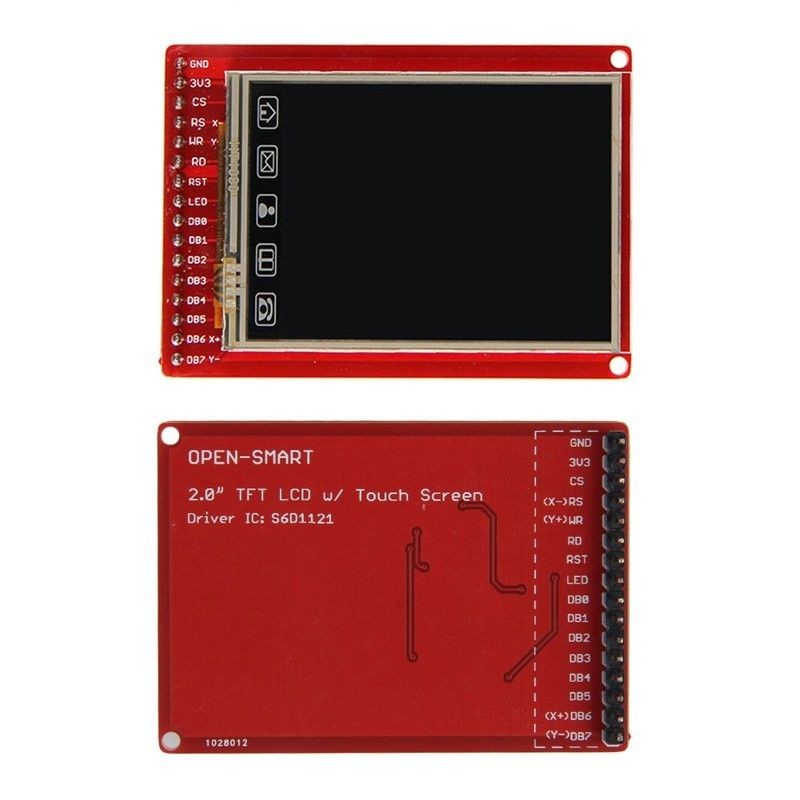 This is a 2.0 inch TFT LCD expansion board. This display has a controller built into it with RAM buffering, so that almost no work is done by the microcontroller.It leads out the pins of the TFT and breakout pins pitch is 2.54mm, so the secondary development is less difficult. With GPRS module, you can design your Arduino phone. With NFC reader module, you can create access control systems with the photos show. With voltage and current sensor, you can make oscilloscope. Can use it directly to display characters, graphics and BMP format images. Compatibility: Because the logic level is 3.3V, it is compatible with 3.3V Arduino board, you generally need to add a level conversion circuit if you use a 5V Arduino Board (Arduino UNO R3 / Arduino Mega2560 / Arduino Leonardo). Arduino library: UTFT Driver IC: S6D1121 Touch screen type: resistive touchscreen. Touch Pen: length is 9cm; Resolution: 240X320, 16-bit (262,000) color Display size: 2.0 inch; Operating voltage: 3.3V; Logic level: 3.3V; Operating current: the maximum is 150mA LED pin can connect to external backlight control circuit to control the brightness of backlight. You can connect it to GND to turn on the backlight all day. Very suitable for digital photo frame, oscilloscope, function generator, detection system monitor
