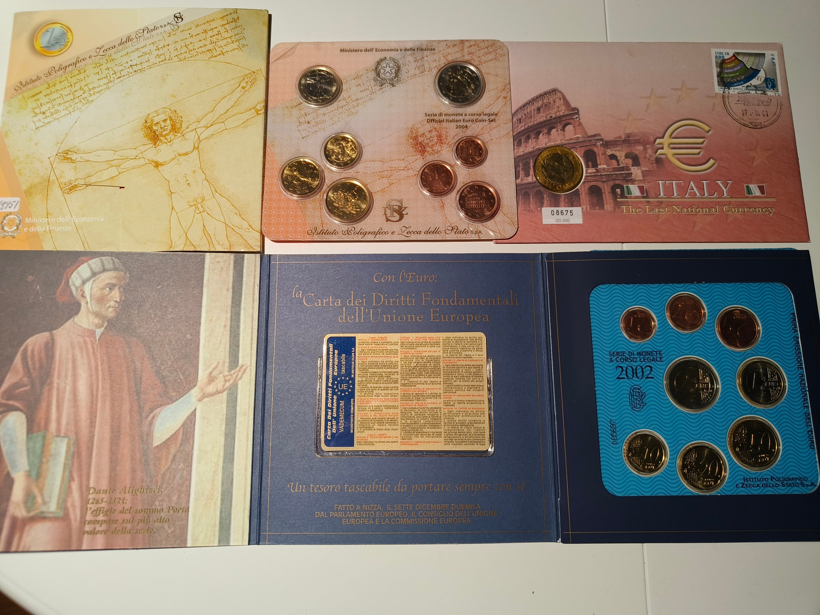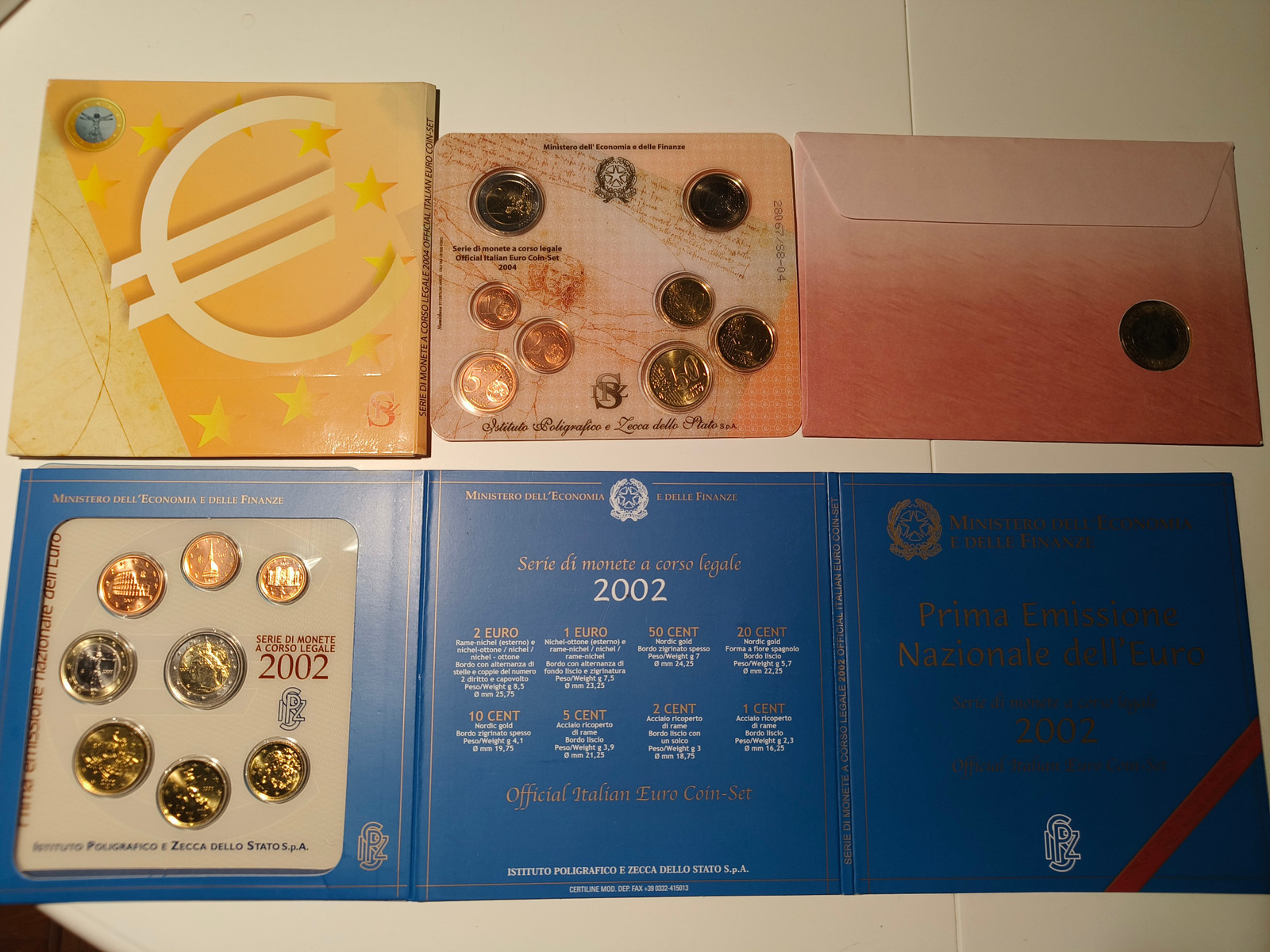 3 italienske; fra 2001 siste italienske mynt, og 2002 /2004 euro sett