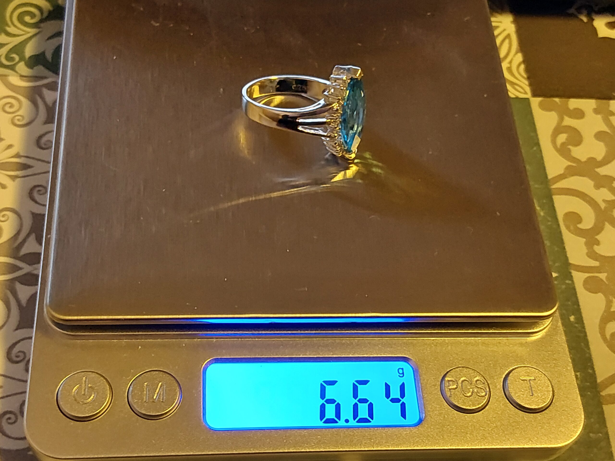 Ring til venstre us size 9,5, 1,9cm innvendig stempel 925 92,5% sølv