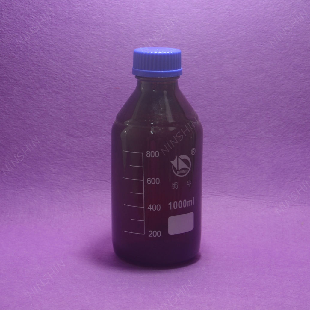 1000mL Amber Brown Reagent bottle with cap autoclavable, heavy wall.