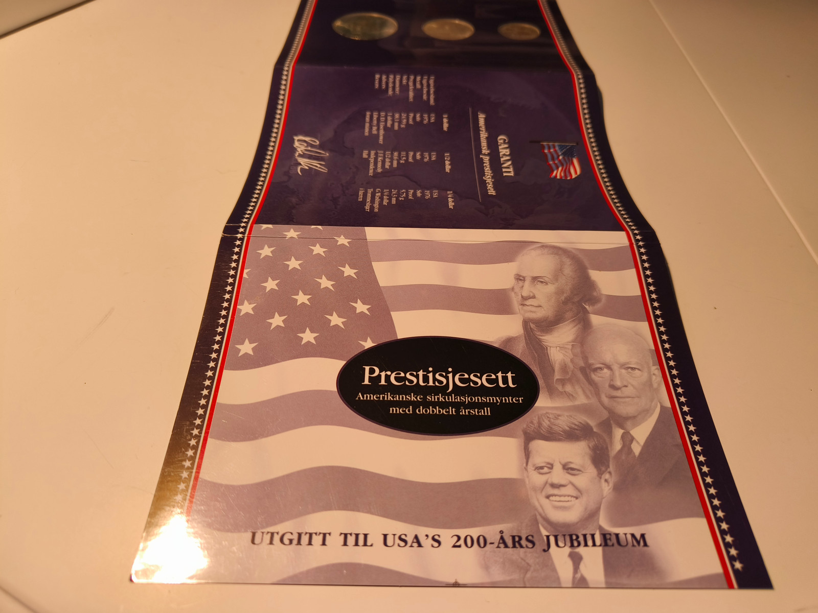 Inneholder 1 dollar 1/2 dollar og 1/4 dollar
