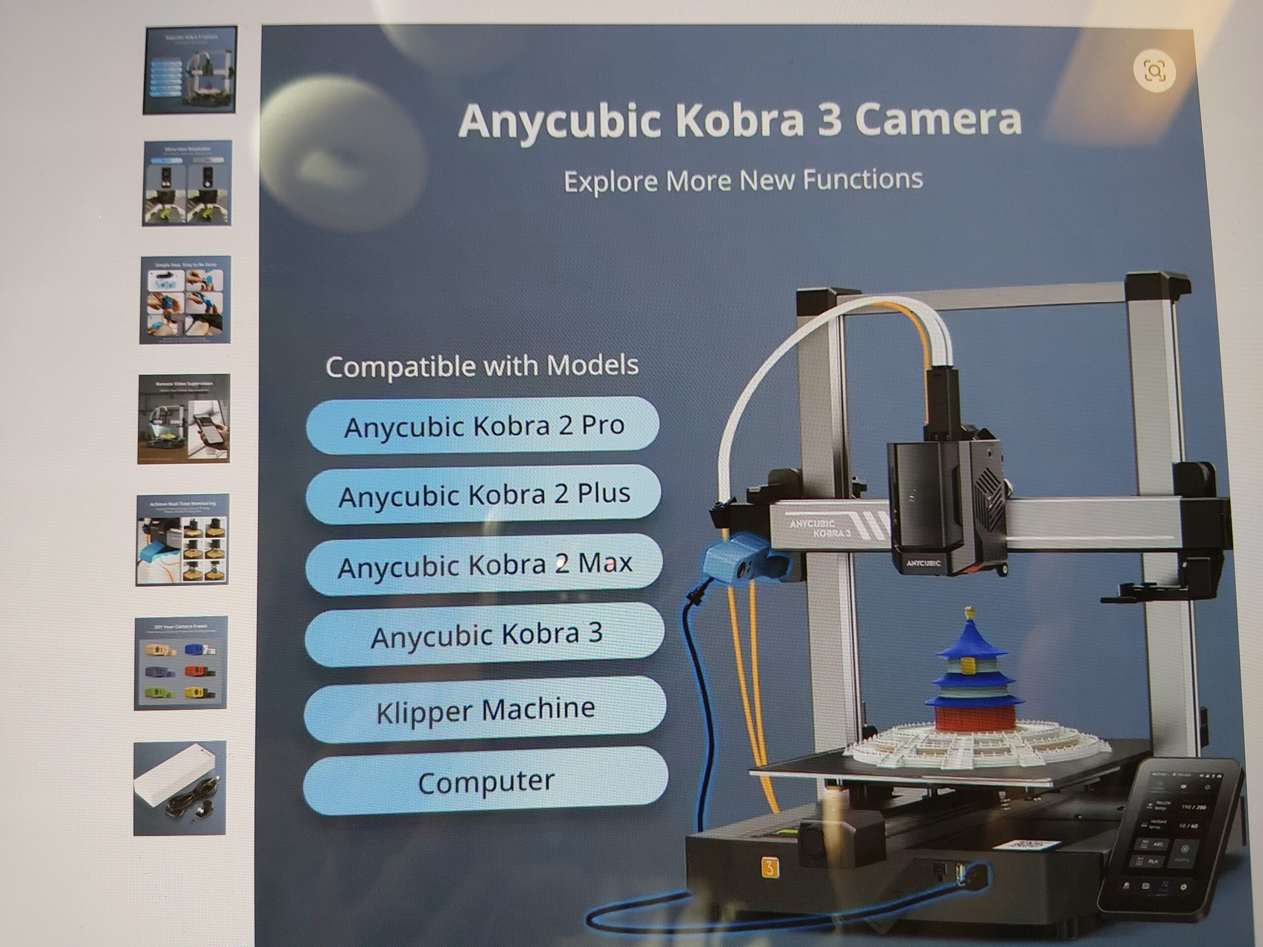 Kamera for 3d printer, Klipper, PC, original Anycubic.