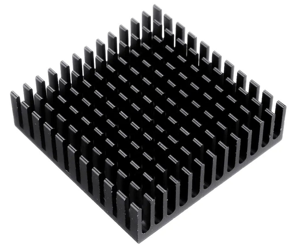 Kjøleleder i sort anodisert aluminium for å fjerne varme fra ønsket komponent. Utstyrt med selvklebende på baksiden for enkel festing.
