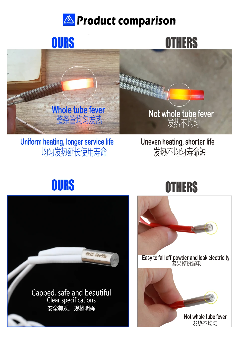 6.The heating tube is marked with voltage and power to make it easier for customers to use.