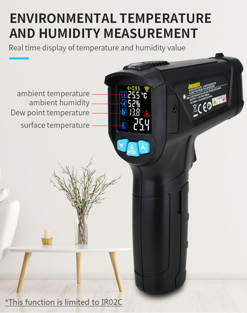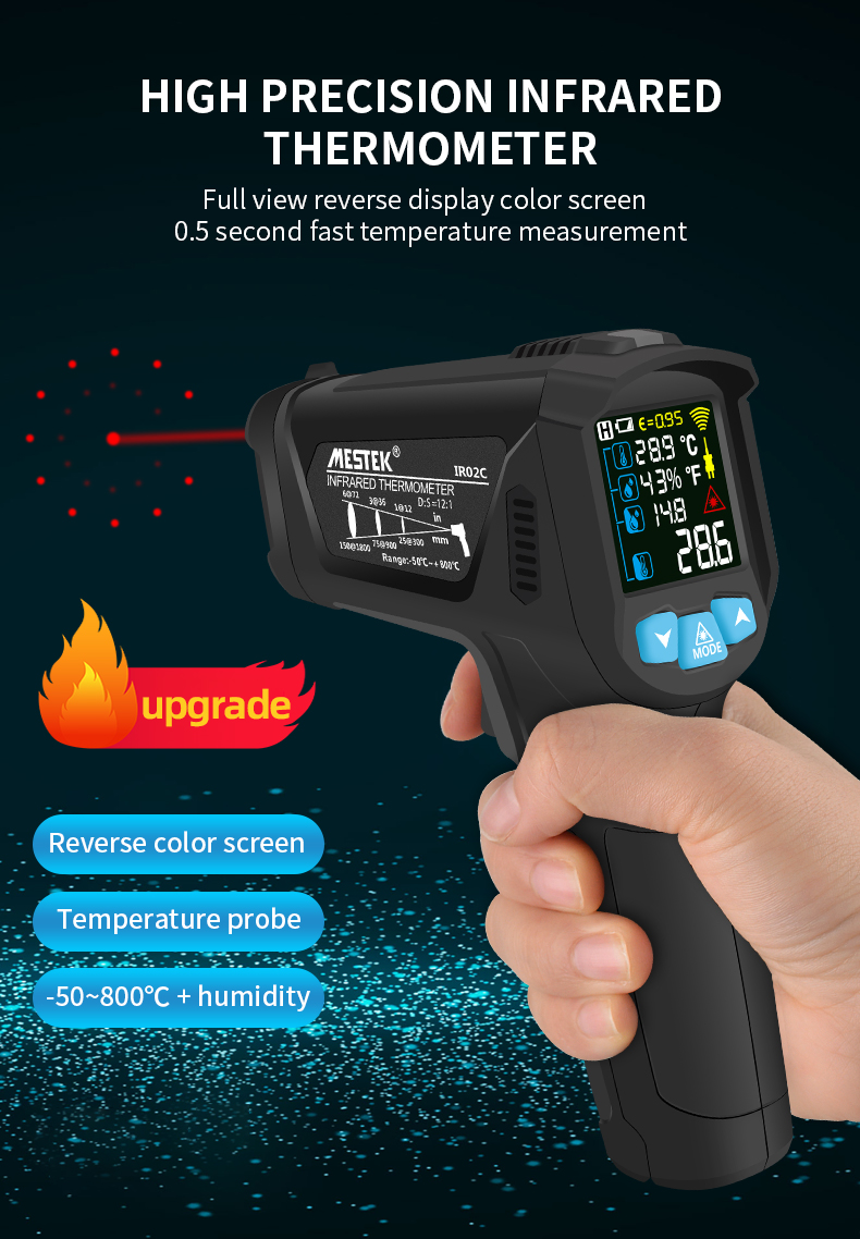 MESTEK IR02 -50~800 DEGREE DIGITAL THERMOMETER HUMIDITY METER INFRARED THERMOMETER HYGROMETER TEMPERATURE HUMIDITY METER PYROMETER IROC2C