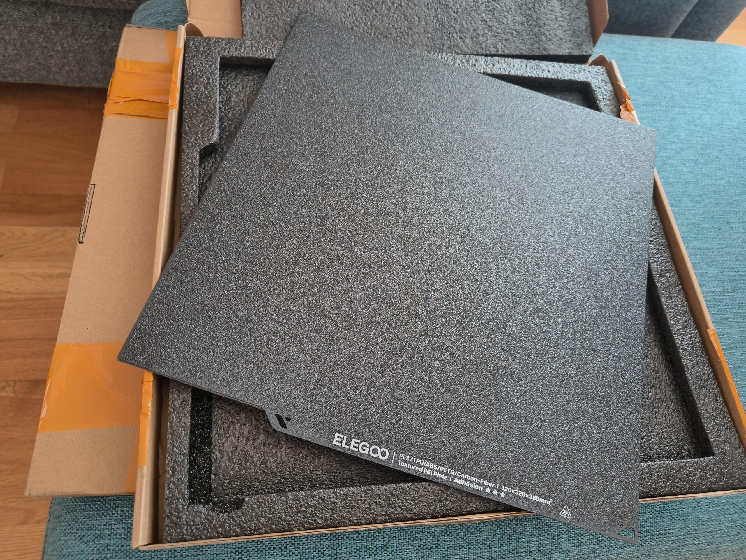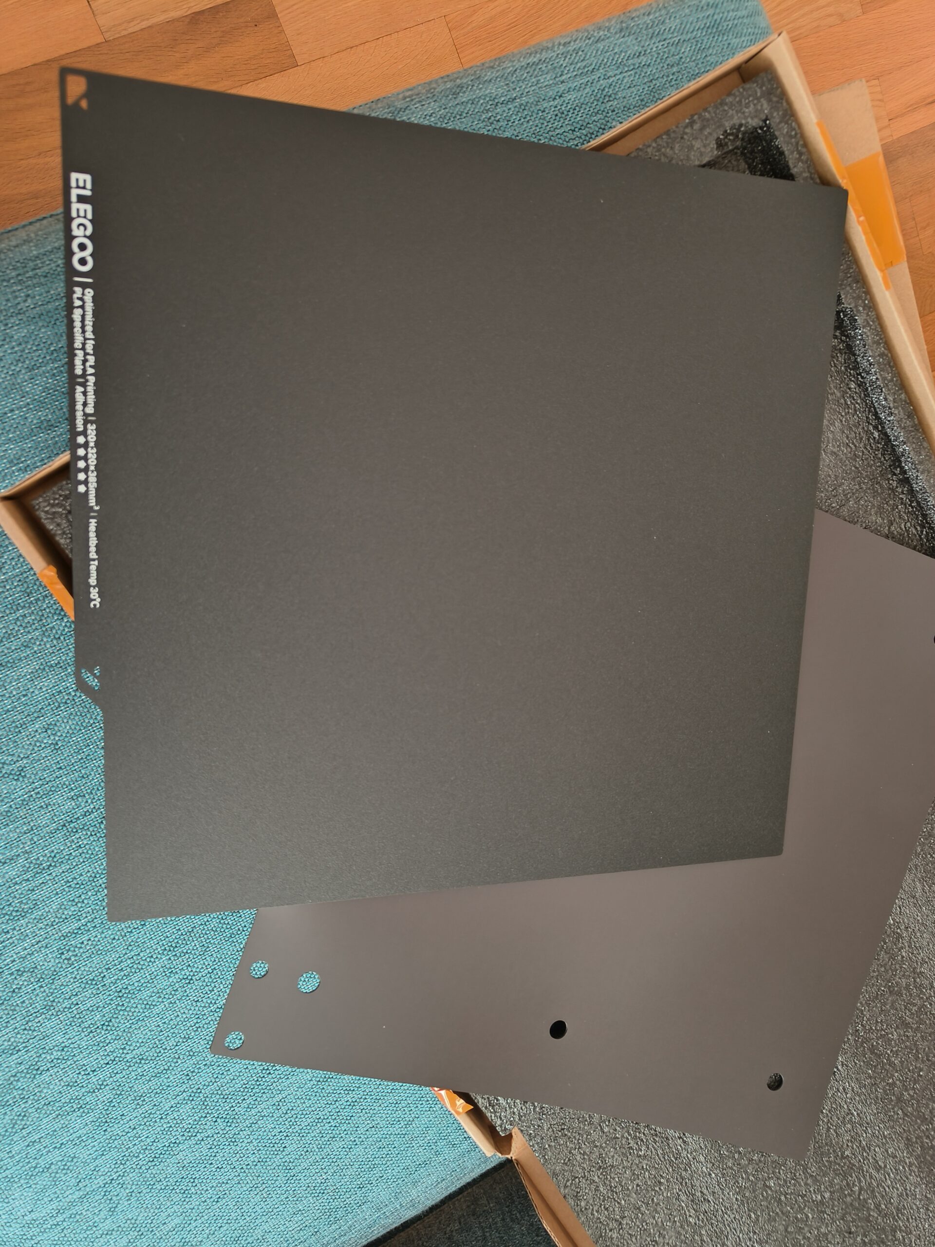 Original ELEGOO, er glatt side kun for PLA på baksiden.