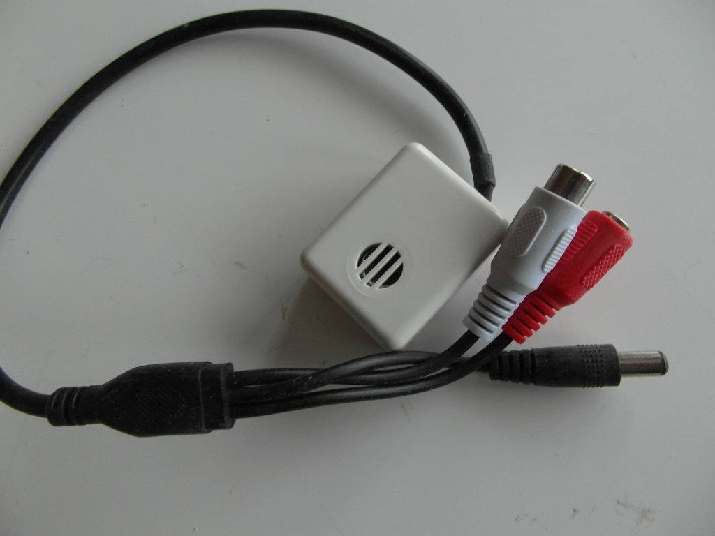 Mikrofon til 2,4GHz overvåkningskamera og spionkamera som ikke har det innebygd, det er 2 typer denne har en justeringsmulighet, justerbar sensivitet boks med festetape. For CCTV kamera DVR