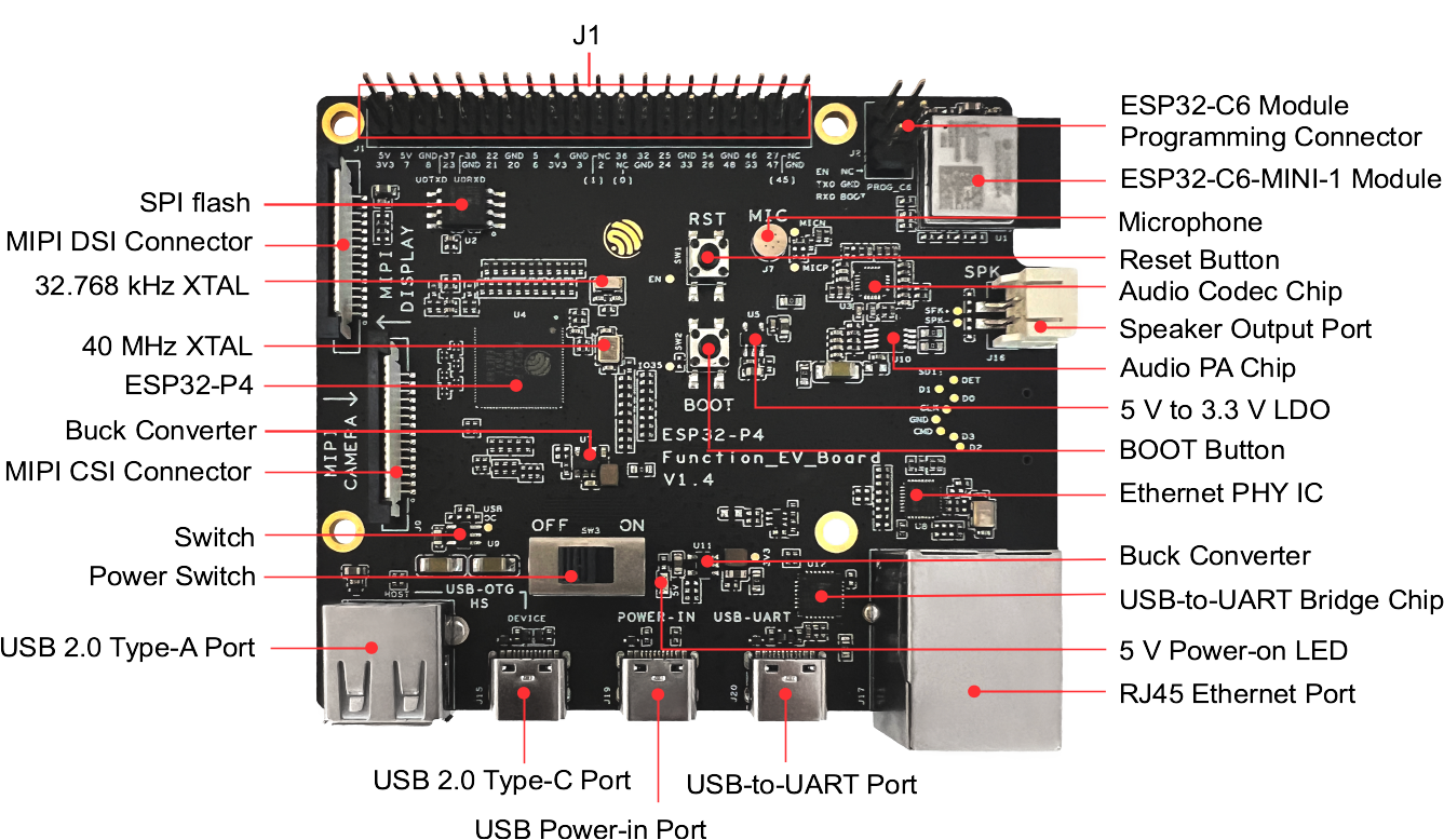User Guide: https://docs.espressif.com/projects/esp-dev-kits/en/latest/esp32p4/esp32-p4-function-ev-board/index.html