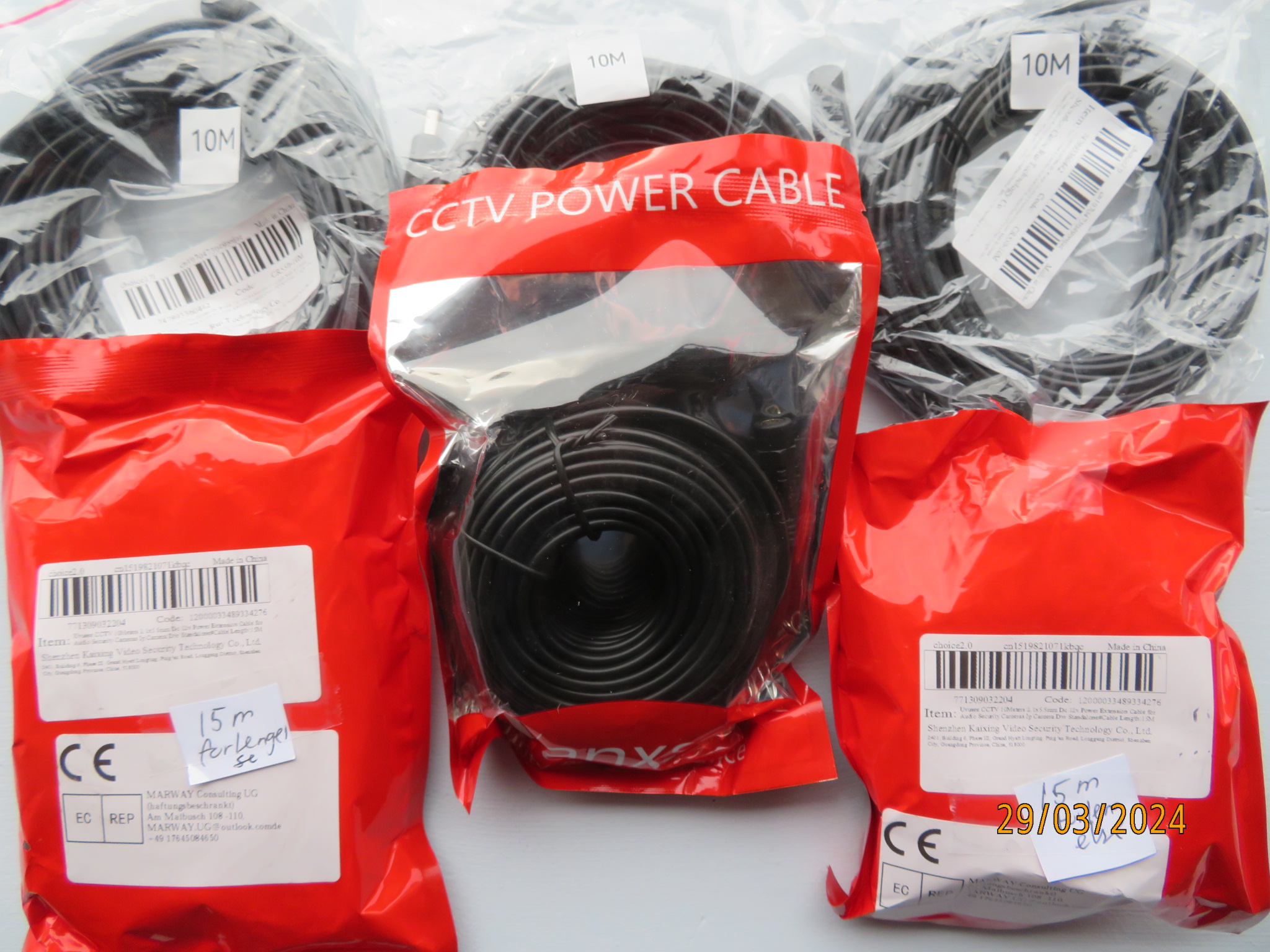Forlengelseskabel til strøm adapter overvåkningskamera utstyr 15m.