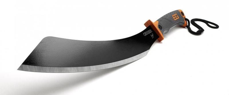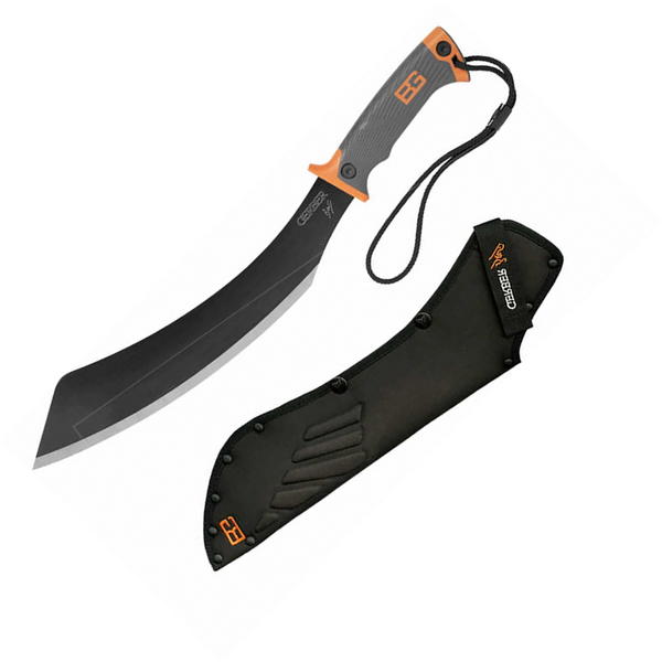 Gerber Bear Grylls Parang machete er en moderne versjon av den tradisjonelle jungel macheten som brukes i Malaysia og Indonesia. Formen på bladet gjør den ypperlig til å kutte kvister og greiner, samtidig som den hindrer at du setter bladet fast i det du hugger i.