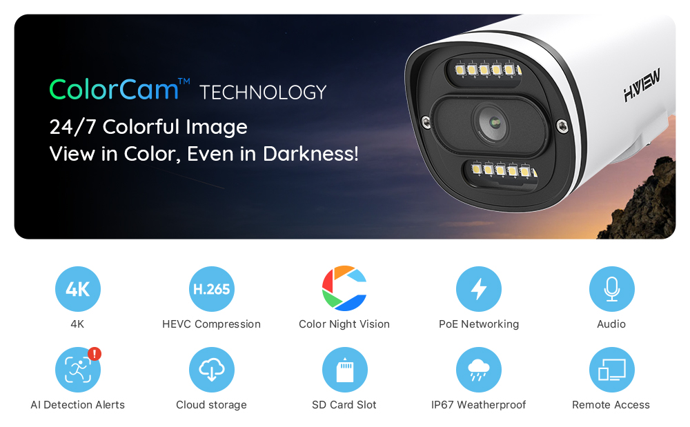 H.VIEW Full Color Night Vision 8Mp PoE Ip Camera 4K Cctv