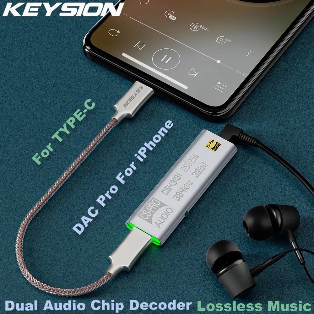 Keysion Chip model:CS43131+SA9312L PCM decoding capability:32bits/384KHz Signal to noise ratio/SNR:>127dB Dynamic range/DNR: >120dB Distortion/THD+N: <0.00028% Frequency response/FR:5Hz-40KHz+/-0.5dB DSD decoding:DSD 60-256