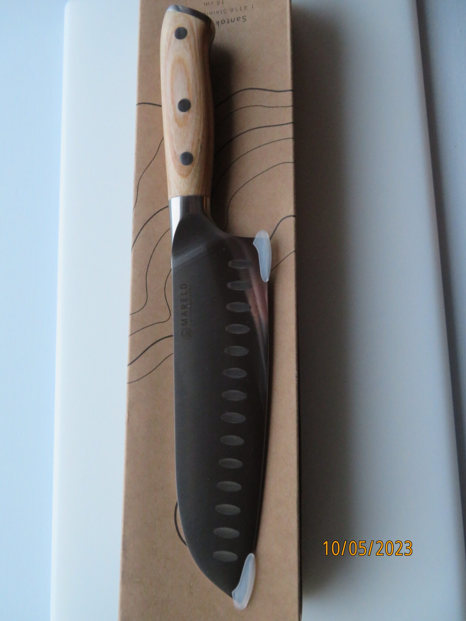 Marelds kjøkkenkniver produseres etter tysk knivtradisjon. De er laget av 1.4116 rustfritt stål med en hardhet som måler 55-57 HRC. Dette gir knivene en slitesterk egg som tåler tøffe utfordringer på kjøkkenet, samtidig som de er enkle å slipe. Håndtaket er laget av lett pakke-tre, en blanding av tynne trelag som er sammenføyd med harpiks under høyt trykk. Det skaper et hardt og kompakt materiale som passer godt på kjøkkenet på grunn av dets vannavstøtende og bakteriehemmende egenskaper.