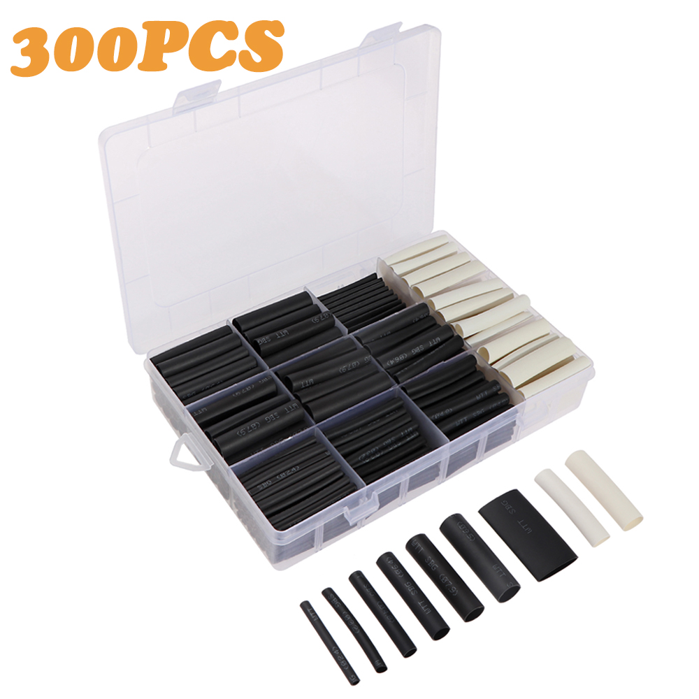300 DELER SETT  3:1 Heat Shrink Tubing Kit  with Glue Dual Wall Tubing Diameter 2.4/3.2/4.8/6.4/7.9/9.5/12.7mm Adhesive Lined Sleeve Wrap