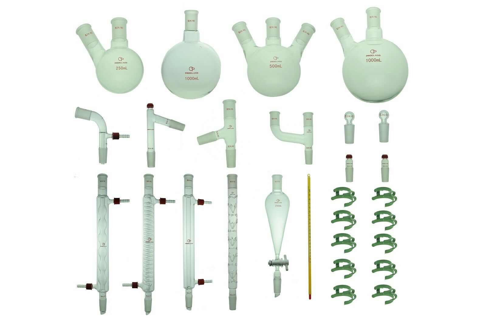 The glassware parts in this advanced organic Chemistry glassware kit are all made of high quality borosilicate glass and annealed at 800C, can be heated directly in an open flame and can withstand typical lab thermal variations in Chemistry processes like heating and cooling. The glass apparatus in this kit are with taper joints, the joints are precision grounded with an extra hand grounding process to ensure leak free.