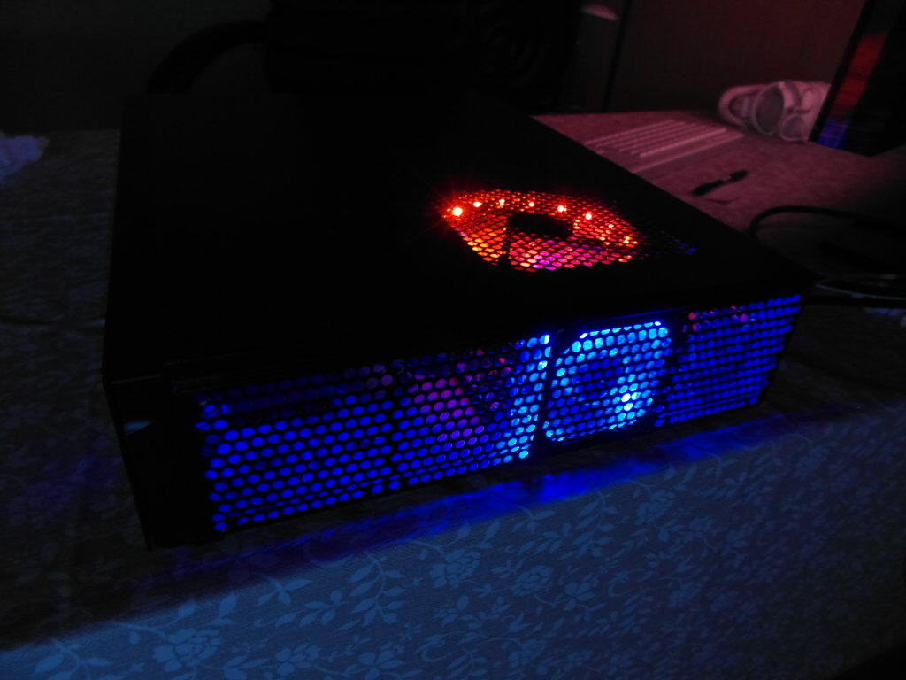 Som ny da den kun er bygd og satt vekk, for å få den på nett ble det lagt inn ubuntu linux. Stort sett kjøpt bare de dyreste komponenter her Silverstone Milo ML04 kabinett Evga 500 watt ASROCK Z97E-ITX/ac Intel i5 prosessor Noctua prosessorkjøler lav modell Intel 530 series 240gb ssd WD GreenPower WD20EURX 2TB Mist vifte 80mm +92mm blått lys Linux Ubuntu norsk LiteOn DVD Enermax Vegas 12cm rødt lys vifte med manuell kablet utvendig kontroll. Følger med helt nykjøpt Asus Gt 1030 2GB viftefritt skjermkort verdt 990,-