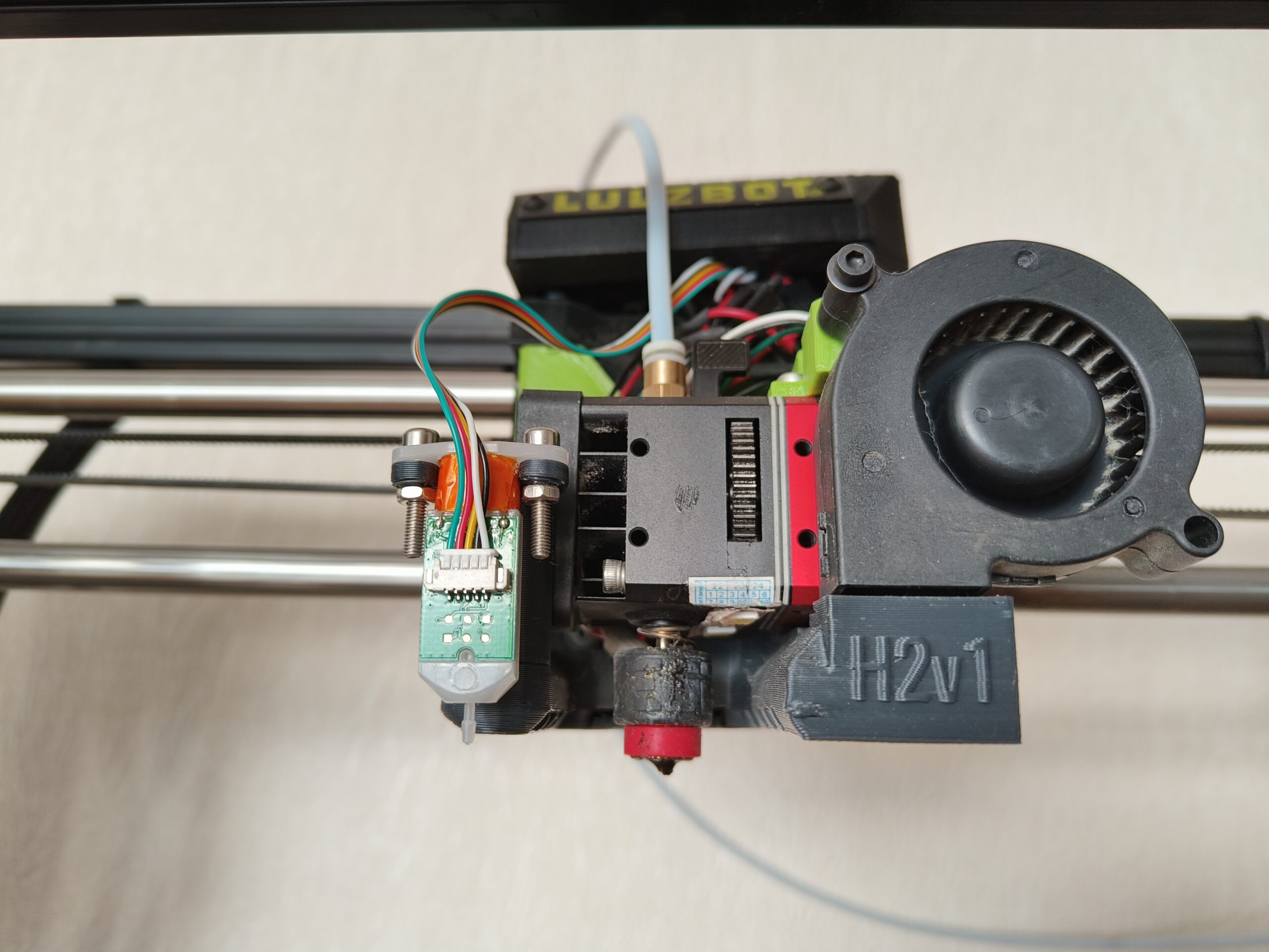 Er montert fillament sensor men er ikke koblet opp i software på Hemera print hode.