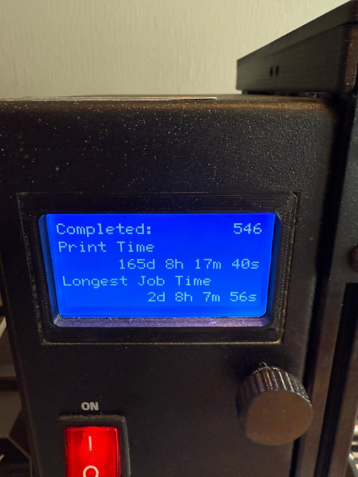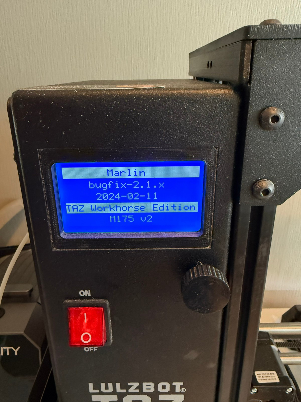 (Marlin 2.1 Rambo kort TAZ Workhorse edition M175 V2, print time 165 dager.)