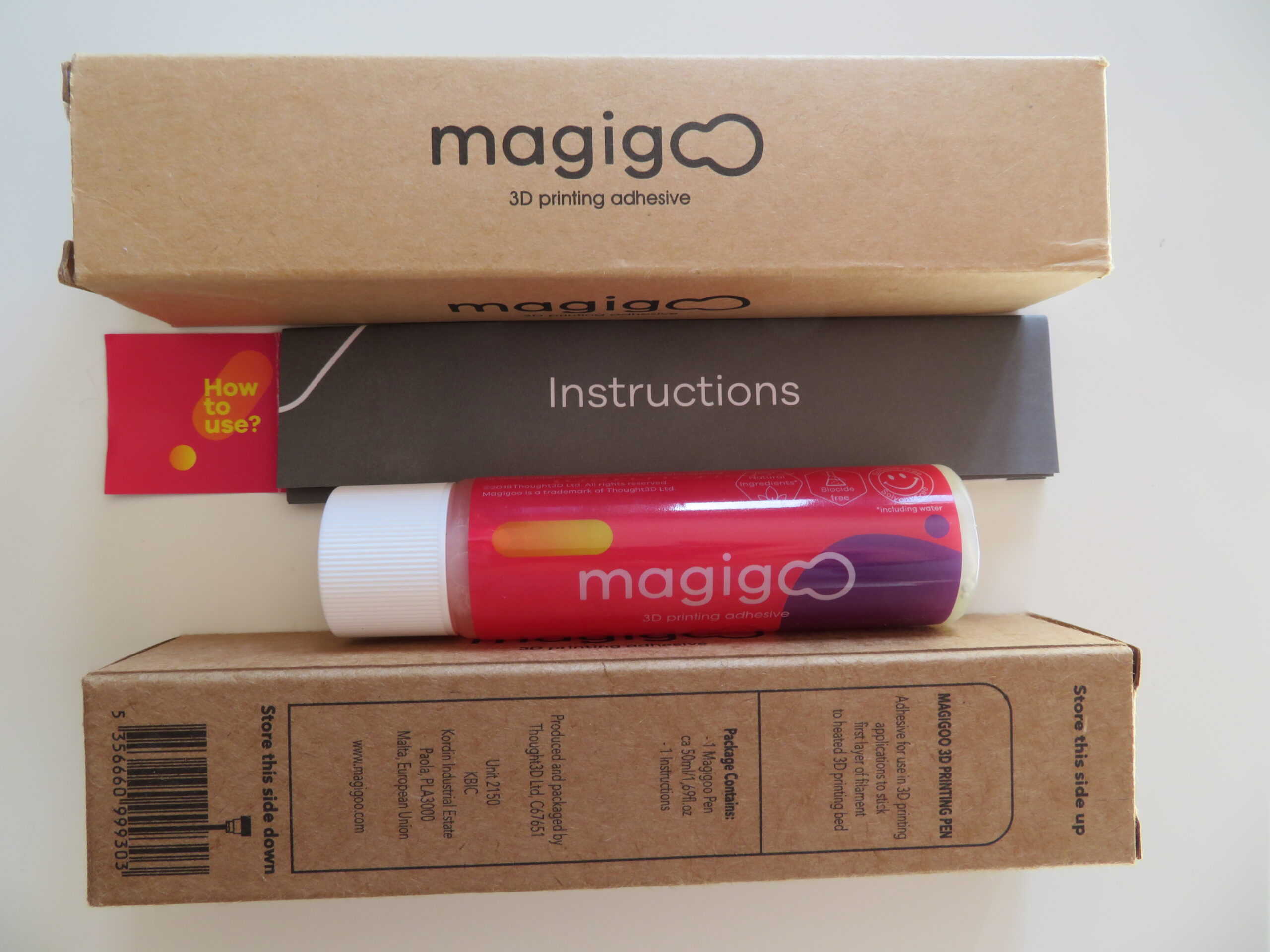 Denne sørger for et perfekt førstelag på printen, noe som er essnsielt for å få et godt sluttresultat. Brukes normalt på glassplater. Det er også lett å løsne objektet når platen har kjølt seg ned. Magigoo vasker du enkelt vekk med en klut med vann. Etter hver utskrift må byggeplaten rengjøres med en fuktig klut.