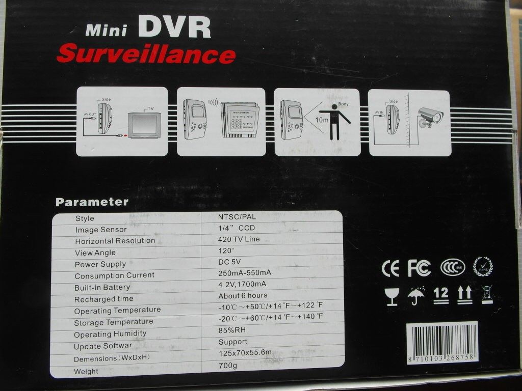 MINI DVR OPPTAKER + SPIONKAMERA I ETT DIGITAL OPPTAKER SKJULT I EN ALARM DETEKTOR UTSEENDE BOKS, MED CCD 420TVL MINI LINSE OG IR FOR OPPTAK I MØRKET. 640x480P. Bruker SD event. SDHC minnekort, medfølger ikke.