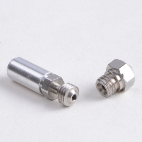 MK10 hot side, 1.75mm supplies, the throat part of the aluminum alloy and stainless steel, the upper part of the aluminum alloy material, easy to heat the extra heat, the lower part of the direct contact with the heating block is part of the stainless steel, thermal conductivity, The greatest reduction in unnecessary heat conduction to the above, greatly reducing the possibility of blocking materials.
