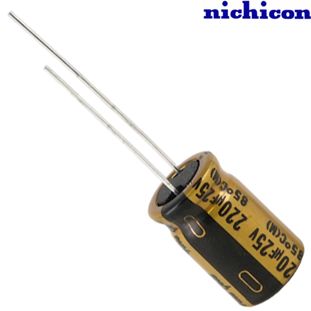 Nichicon’s FG or «Fine Gold» acoustic series are suited for high grade audio equipment, using state of the art etching techniques. Rich sound in the bass register and clearer high end, superb performance.