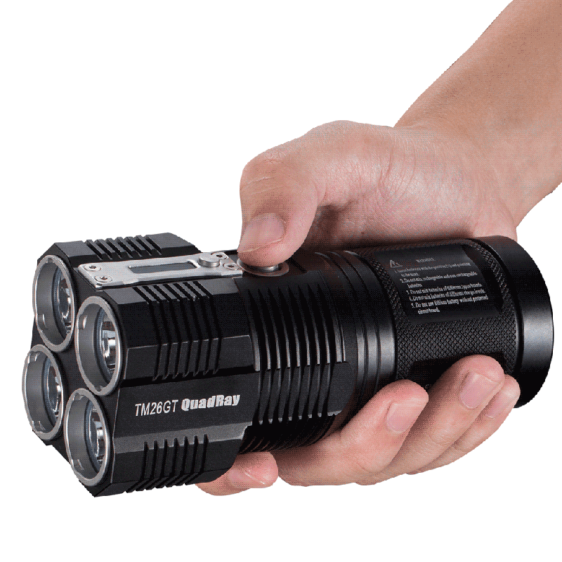 Lyser 704 meter med samme effekt som du lyser mot en vegg på 50 meter avstand. 5 ulike lysstyrker å velge i. IPX8 vanntett. Medfølger 4 ladbare batterier og orig. lader for denne.