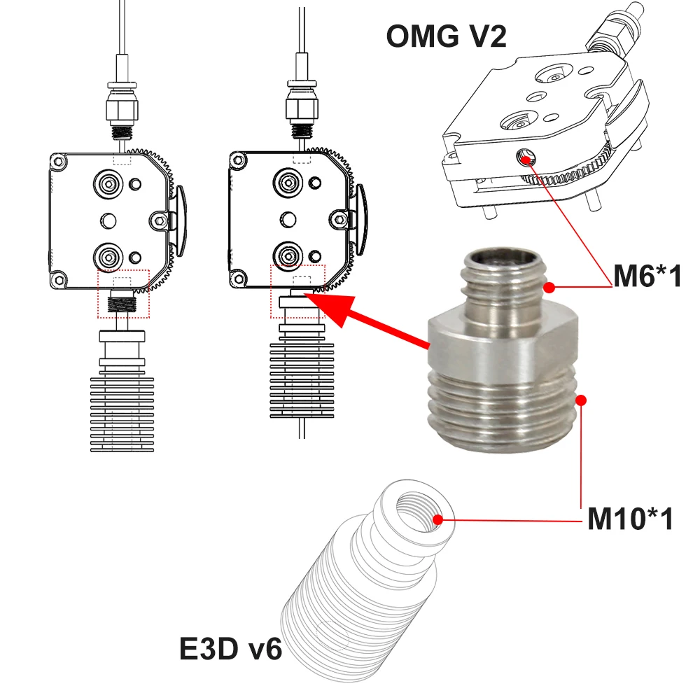 Stainless Steel Material M10-M6 Suitable For Extruder OMG V2 E3D V6 Threaded Heat Pipe Conversion And Docking Adapter