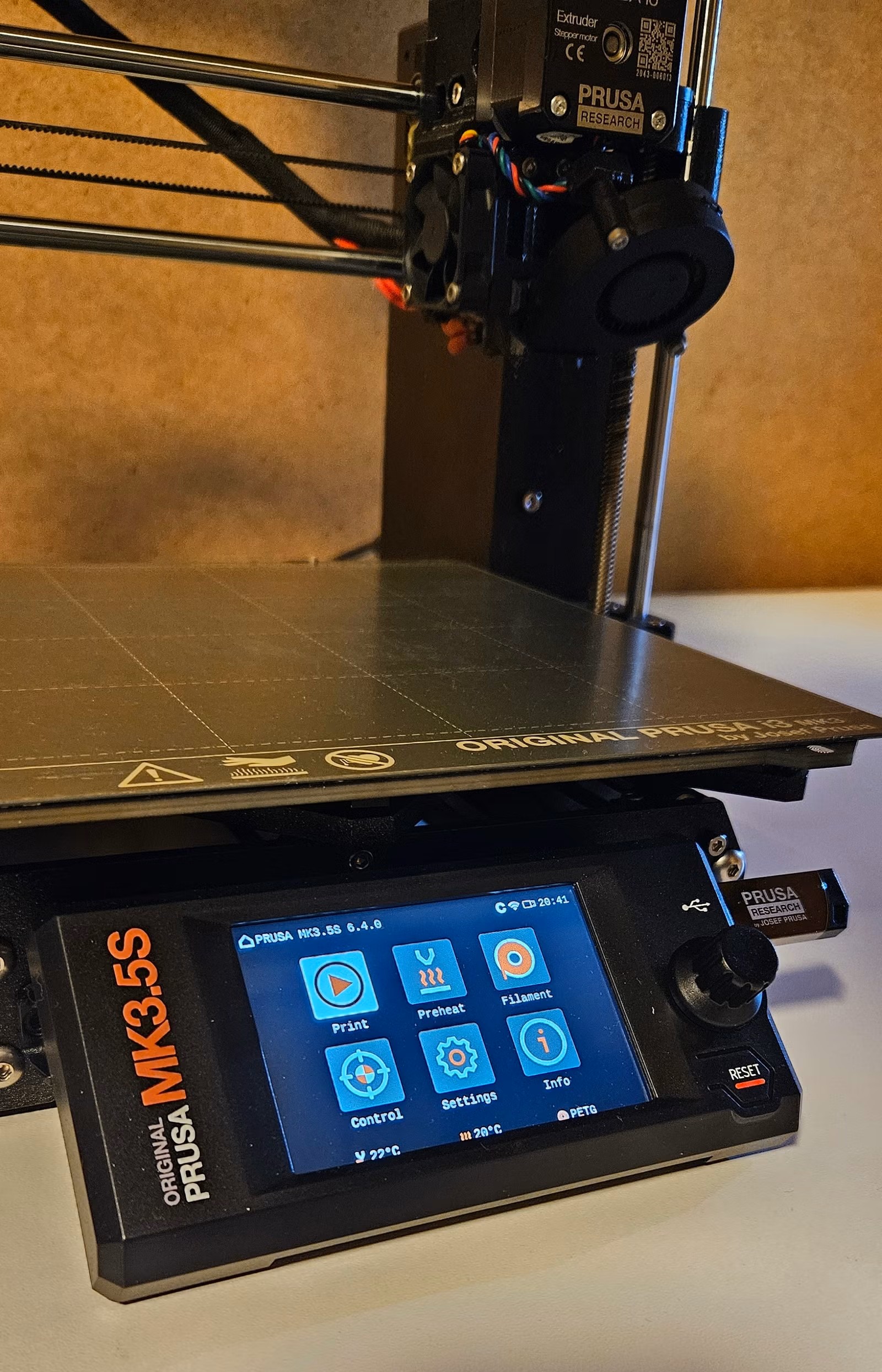 Printeren er oppgradert med originalt MK3.5S-oppgraderingskit kjøpt direkte fra Prusa.