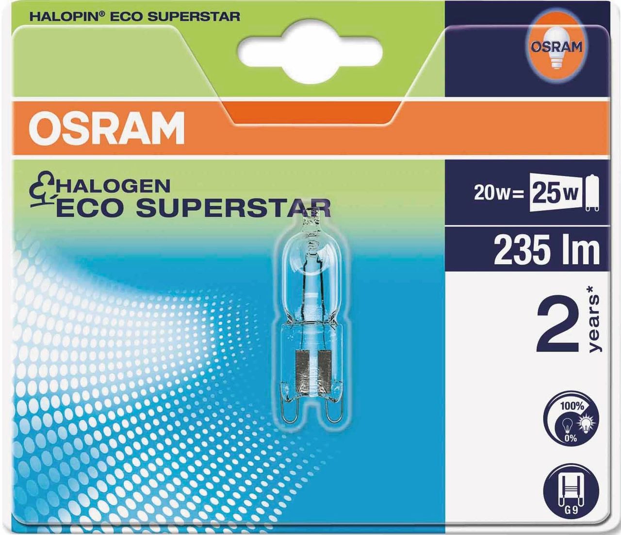 Osram Halopin Pro 66720 G9 230V 20W lyser som 25W