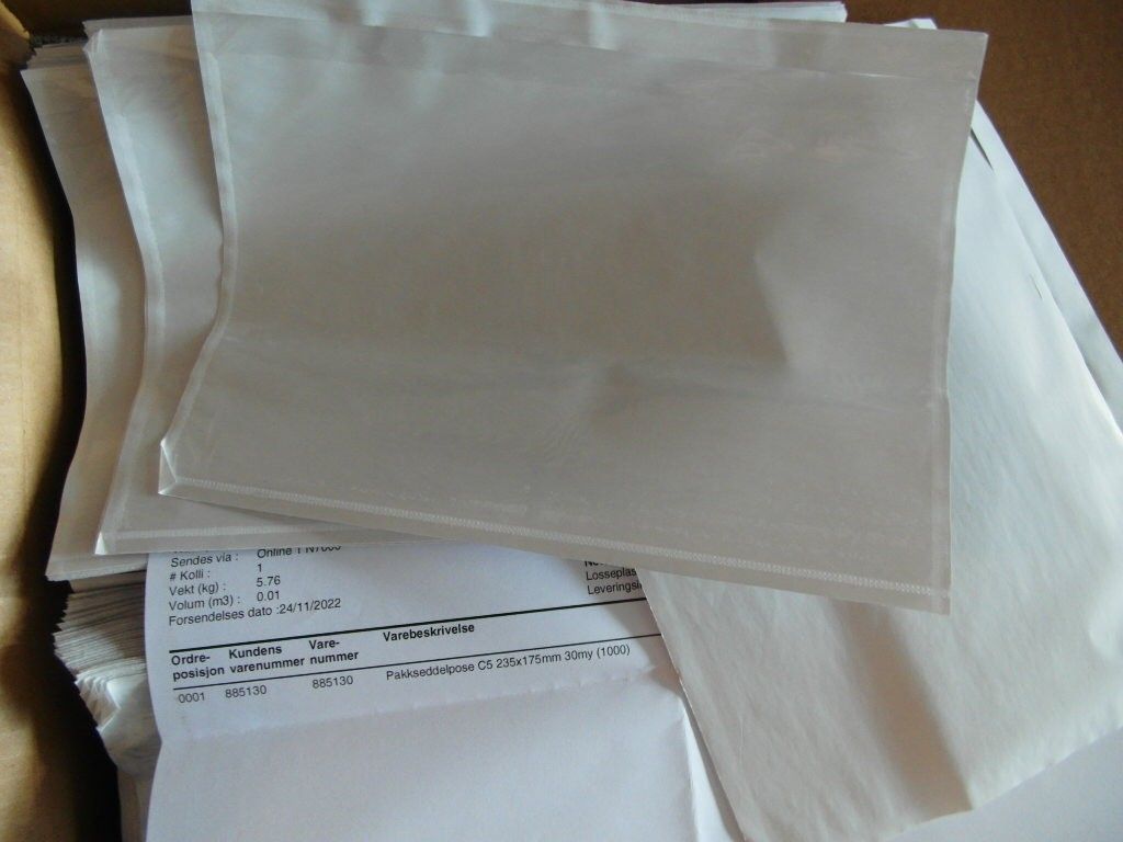 Pakkseddelpose C5 235x175mm antall