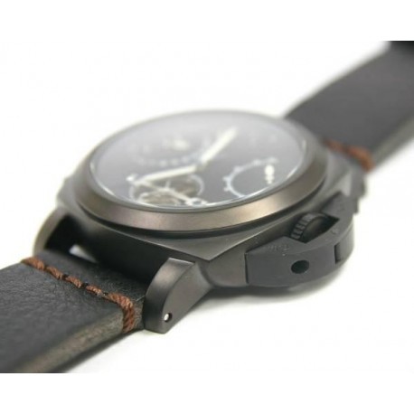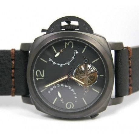 Parnis modell 331 Coffe black dial. Vintage black thick leather band. Power reserve up to 45h. High quality PVD finished case. Seagull 21J automatic movement. Waterproof 3ATM.