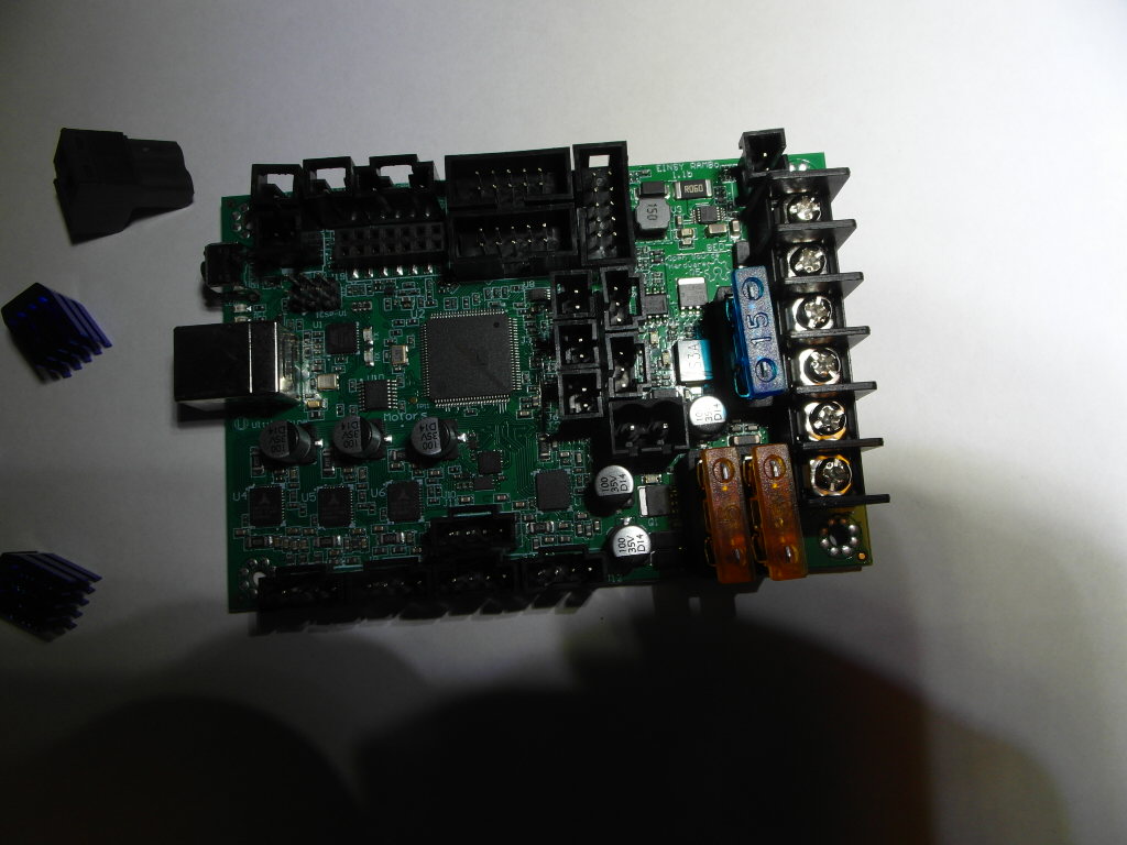 EinsyRambo v1.1b for 24v. med terminalkontakt og kjølebrikker.