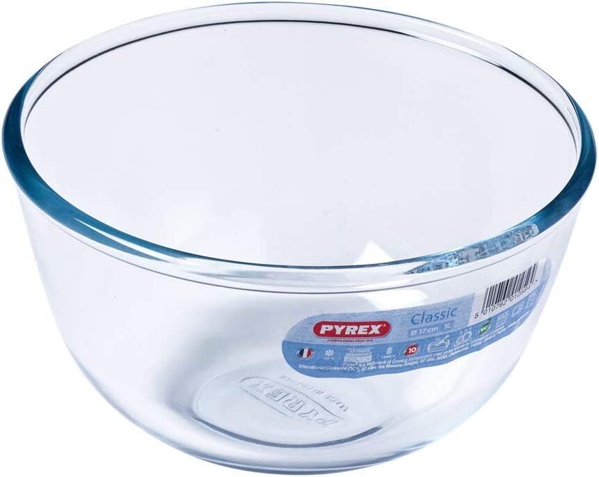Skål / bolle fra Pyrex 1 l. Den perfekte bolle enten du skal forberede til middag og baking, eller vil ha en fin serveringsskål. Tåler ovn opp til 300 grader, mikro-ovn, fryser og oppvaskmaskin.
