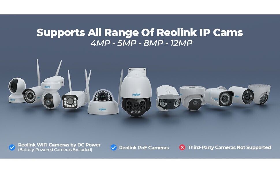 (NB: kameraer fra andre produsenter enn Reolink kan ikke brukes, støtter ikke batteri kamera fra Reolink, men de andre kan brukes.)