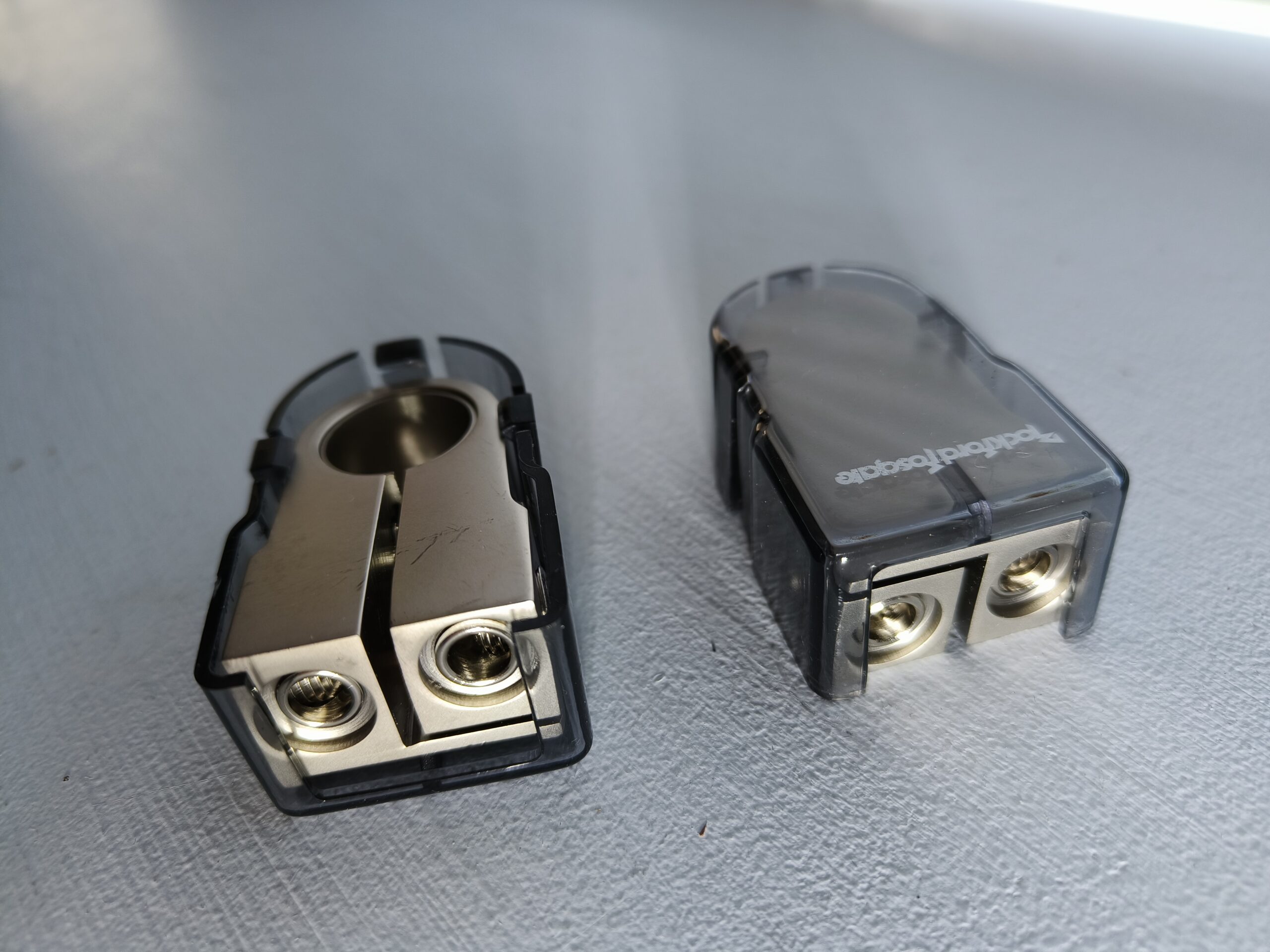 Rockford Fosgate battery terminal 1-2 kabler 4/8awg modell RFDB4 Pris pr stk Deksel med på de.