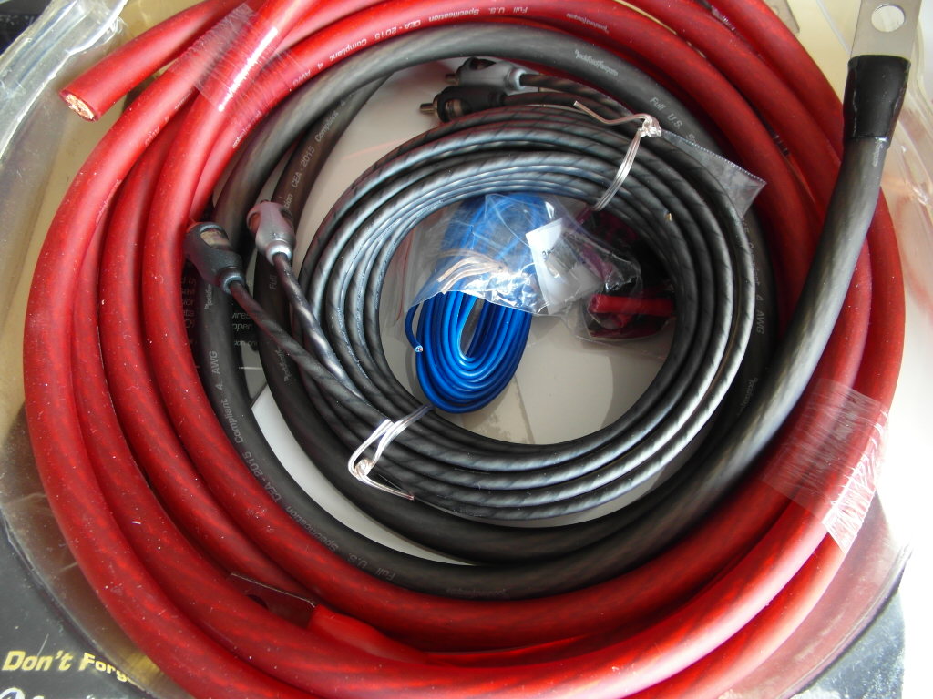 SOLGT:Rockford Fosgate Kabelsett 21mm2 17fots rød kabel 3fot svart kabel 20fots remote kabel 20 fots twisted pair RCA kabel Maxi sikringholder 60A sikring:SOLGT