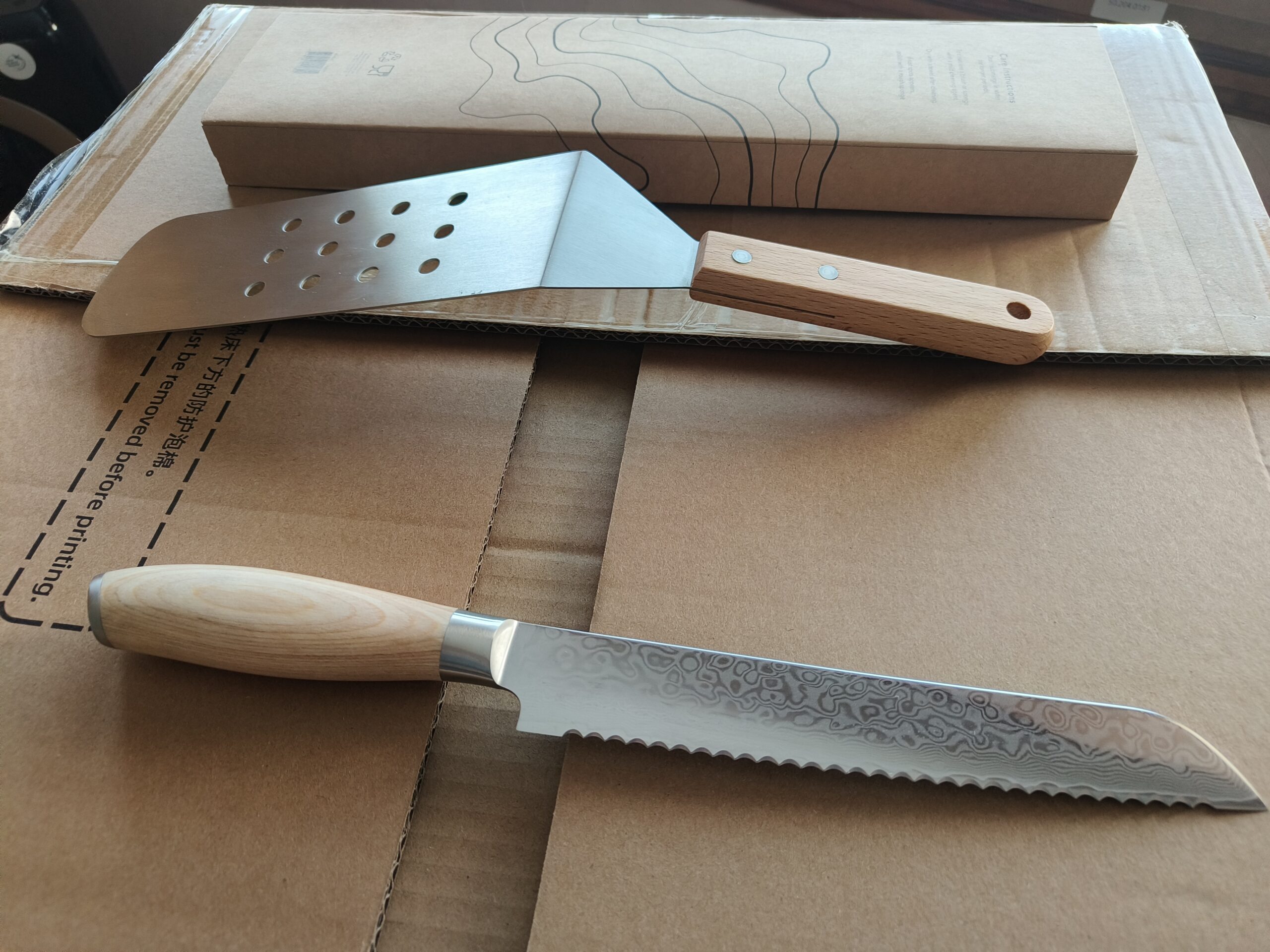 Selger en ubrukt stor stekespade, egnet for store hamburgere og store biffer. Lengden på 38cm gjør den og godt egnet til bruk over grill på sterk varme. Håndtak av bøk.