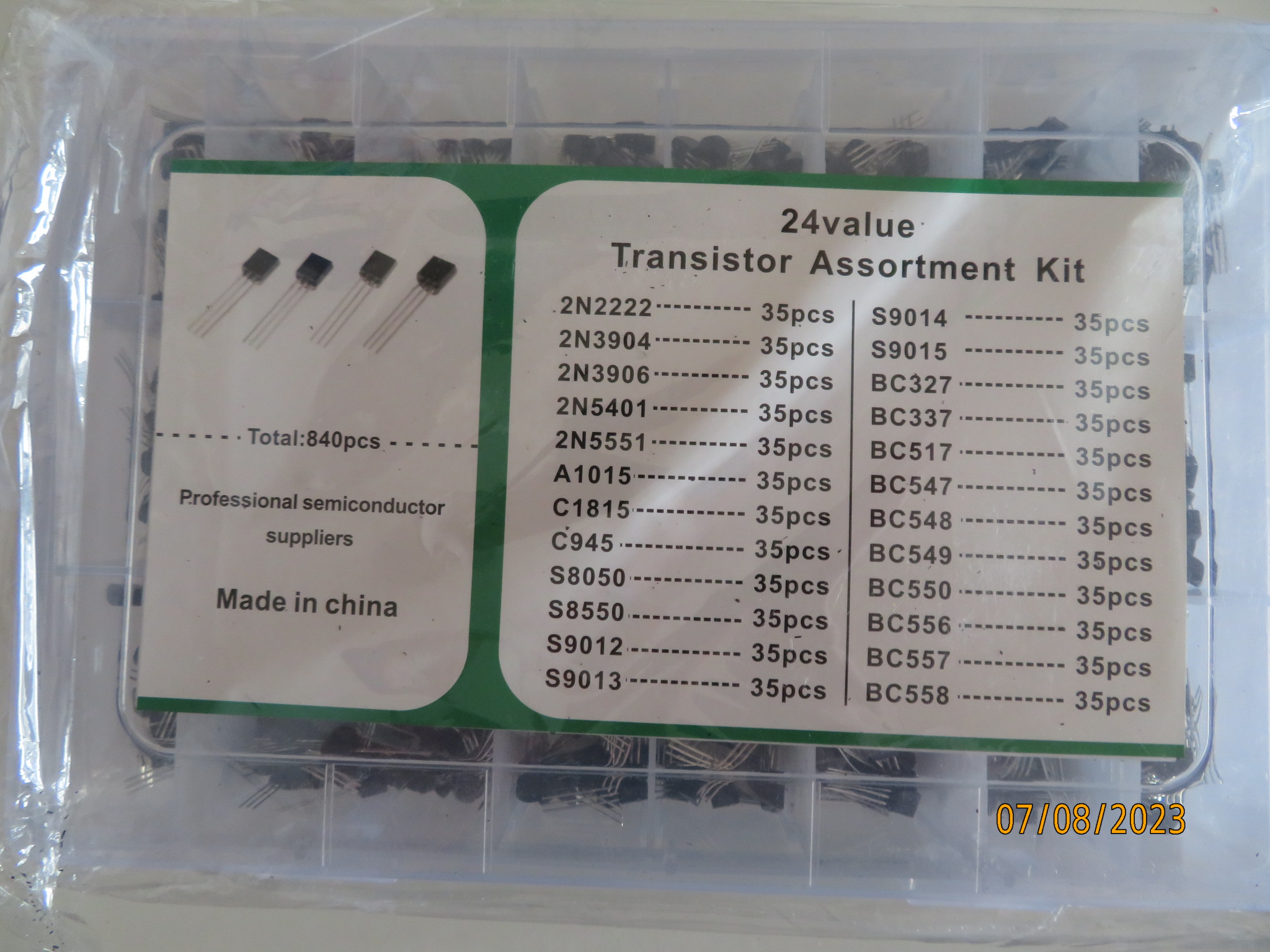 24Values TO 92 Transistor-Kit BC327 BC337 BC547 transistor 2N2222 3904 3906 C945 PNP/NPN