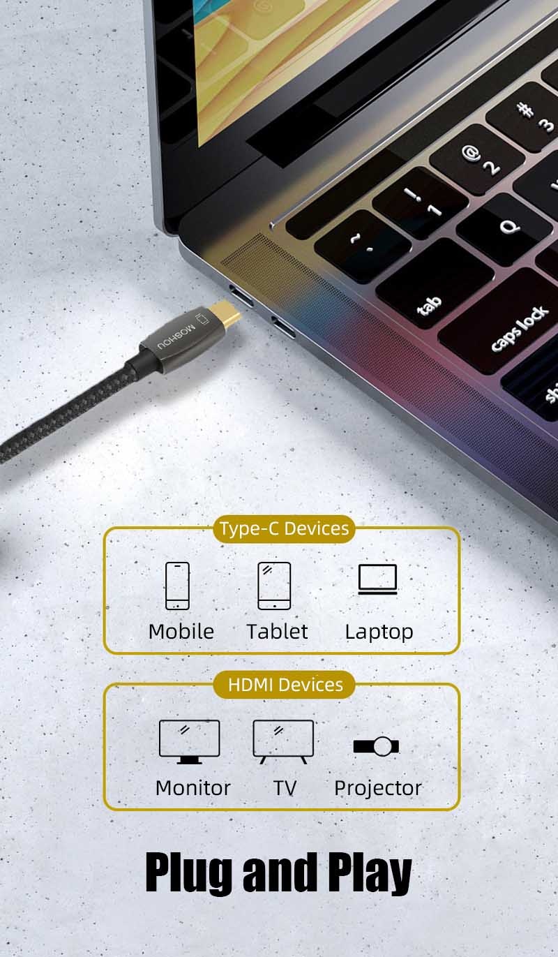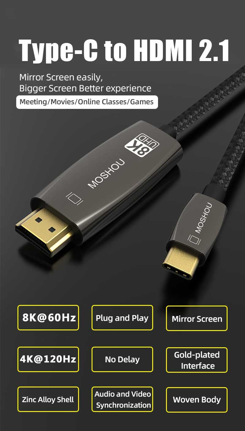 Type C (Mobil, Tablet, Laptop, etc) to HDMI 2.1 (Monitor, TV, Projector, etc)