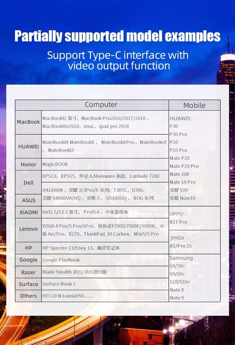 Note: the Type C interface should be support Alt Mode
