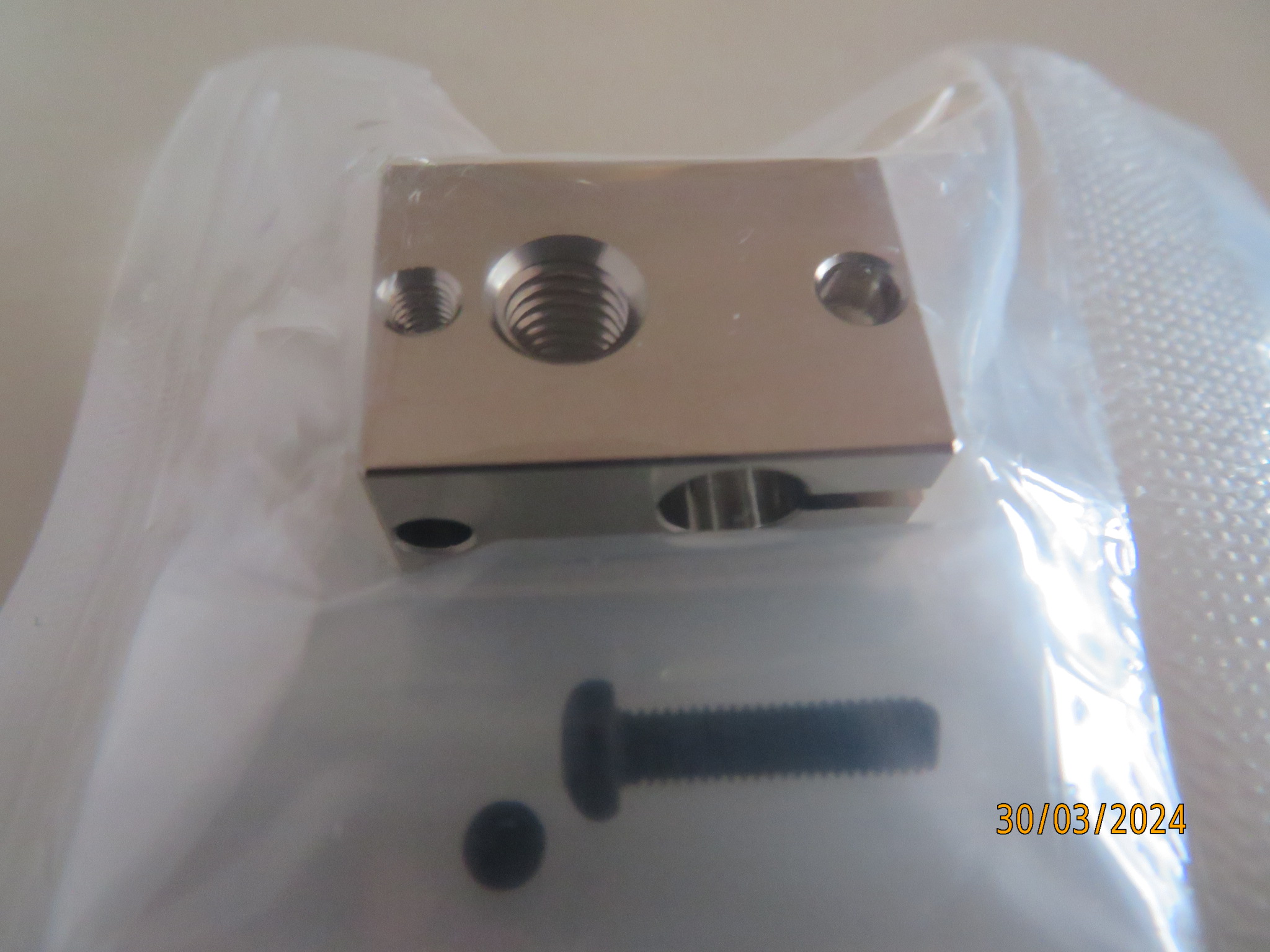 Plated (nonsticking) Copper block for V6 hotends.