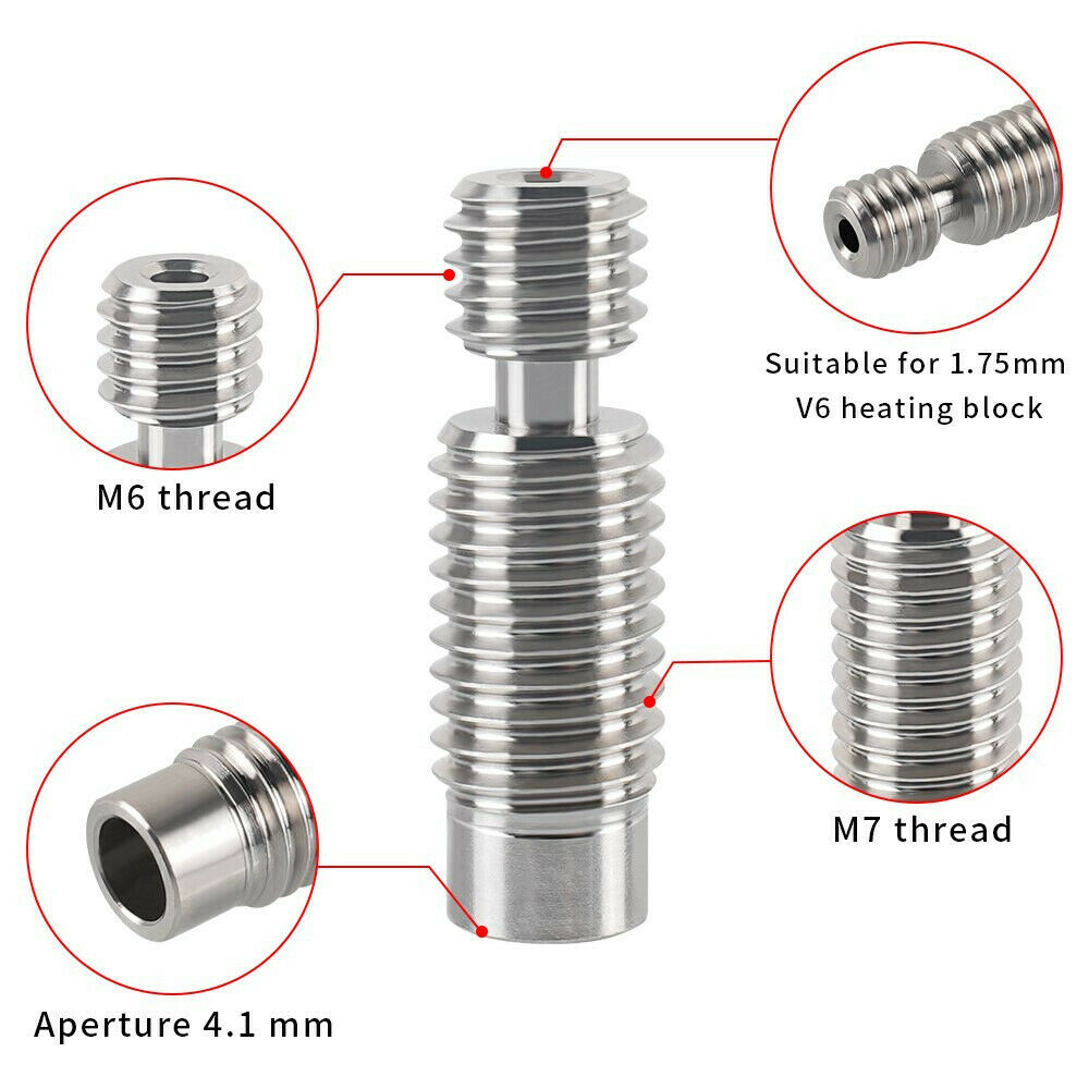 V6 All metal heatbreak i titanium alloy TC4 GRADE5 for 1.75mm filament Super smooth for V6 bowden Hotend extruder 1.75mm Filament