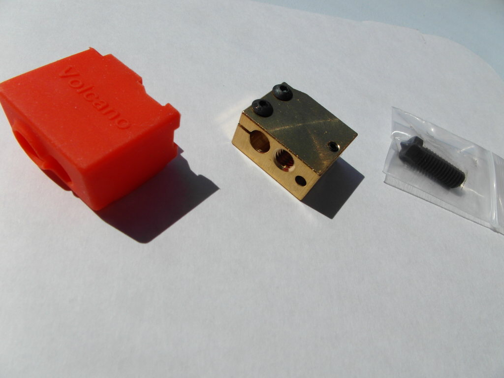 Gjelder med svart Volcano hardened steel dyse 0,4mm og Brass heater block for volcano hotend, også med orange silicon hette