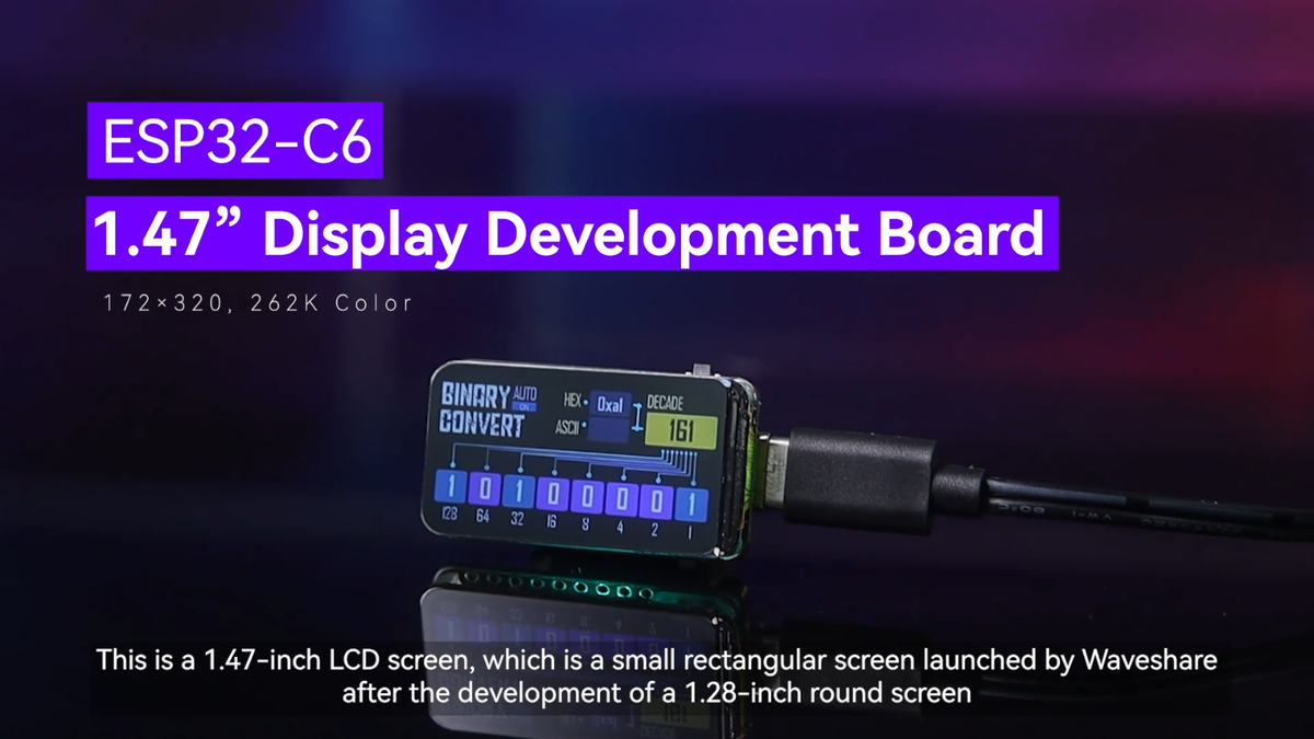 - Onboard 1.47inch LCD display, 172×320 resolution, 262K color