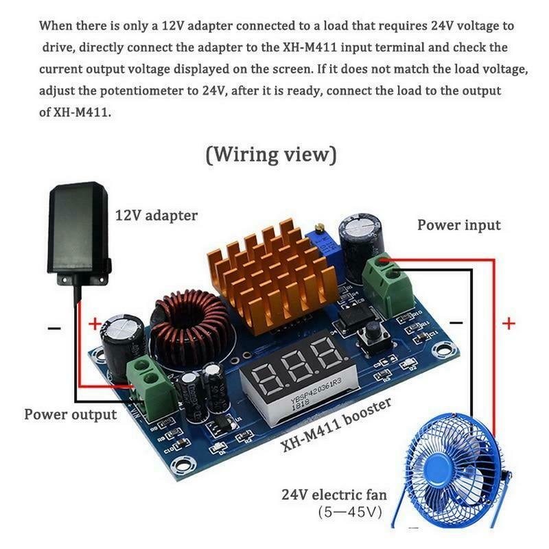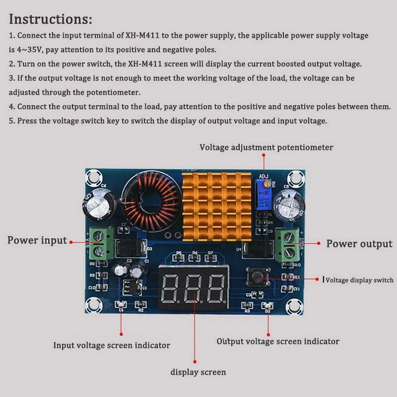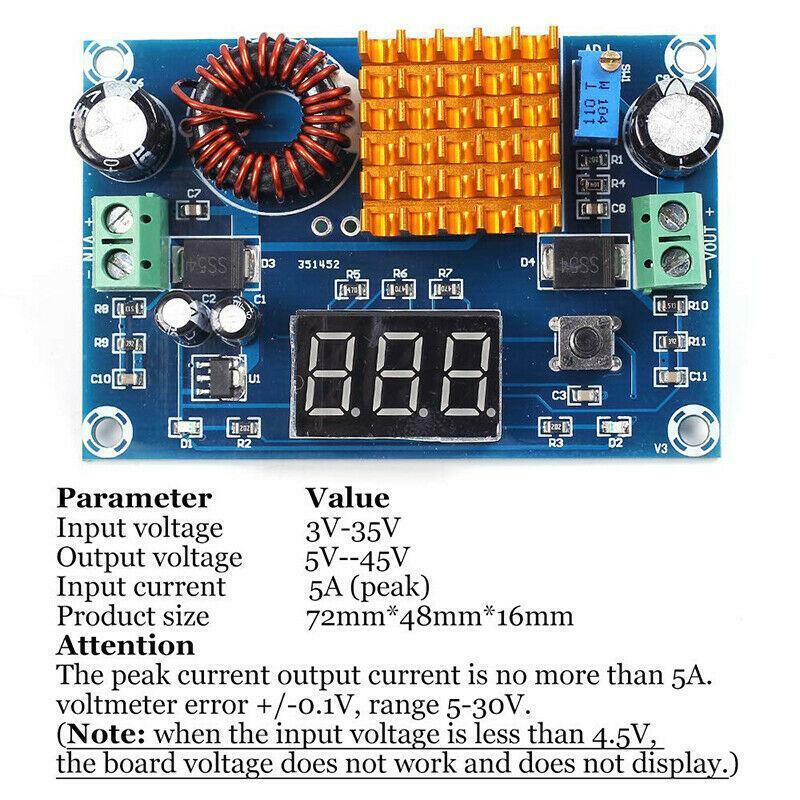 XH-M411 DC 3V-35V to DC 5V-45V Boost Converter Module Voltage Regulator Adjustable Step Up Voltmeter Digital Display Module