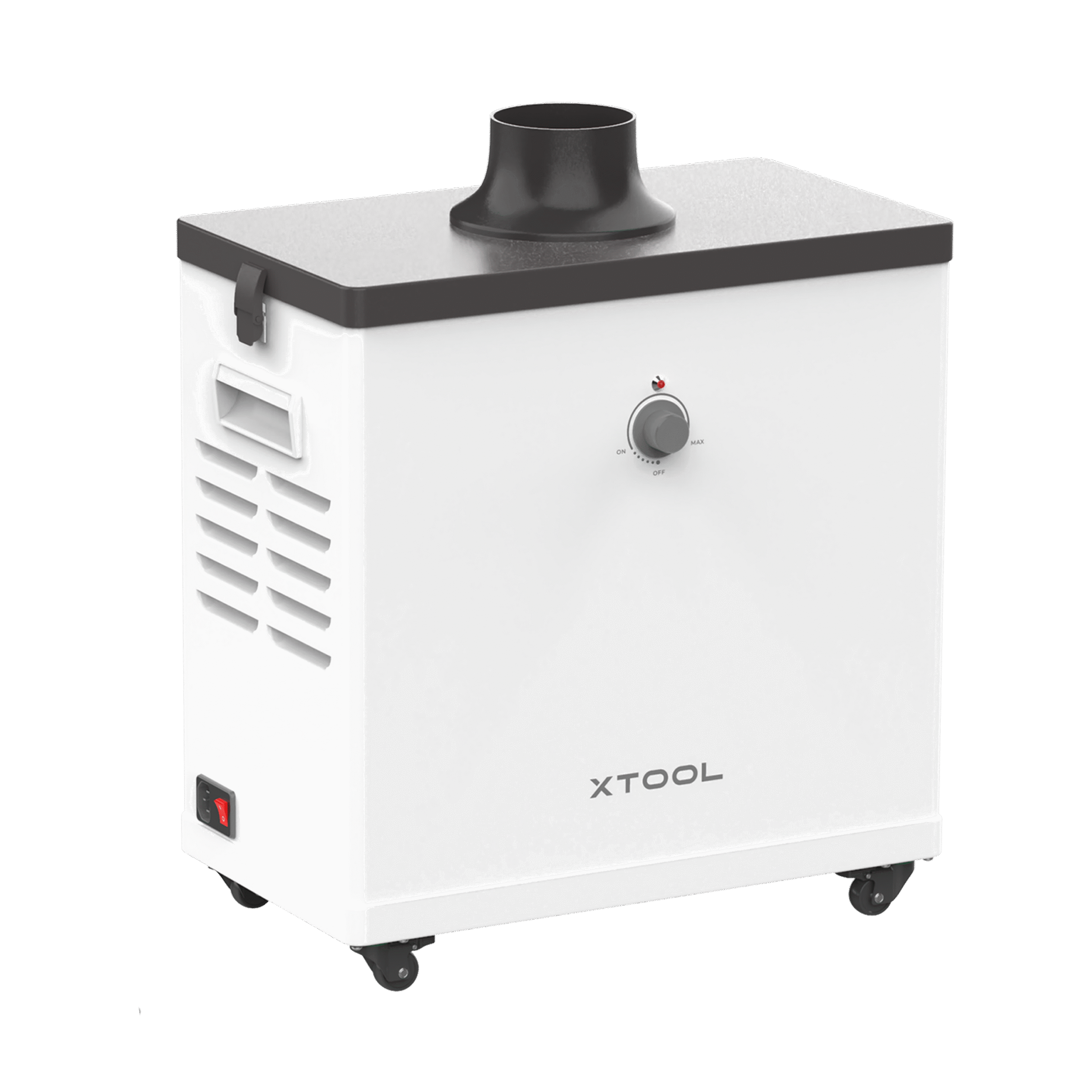 Luftrenser for laserprintere. xTool Smoke Purifier bruker 3-lags filtrering inkludert premium aktivert karbon og HEPA-filtre for å oppnå 99,97 % renhett, fjerner giftige røyk, støv og ubehagelige lukter via laserskjæring.